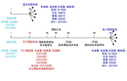 B. 專利申請人向外國提出普通專利申請時,必須在首次提交專利申請之日后的十二個月內向每一個國家的專利局提交專利申請。而通過PCT,專利申請人可以在首次提交專利申請之后的三十個月內辦理國際專利申請進入每一個國家的手續,這樣便延長了進入國家階段的時間。利用這段時間,專利申請人可以對市場、對發明的商業前景以及其他因素進行調查,在花費較大資金進入國家階段之前,決定是否繼續申請外國專利。若經過調查,決定不向外國申請專利,則可以節省費用。